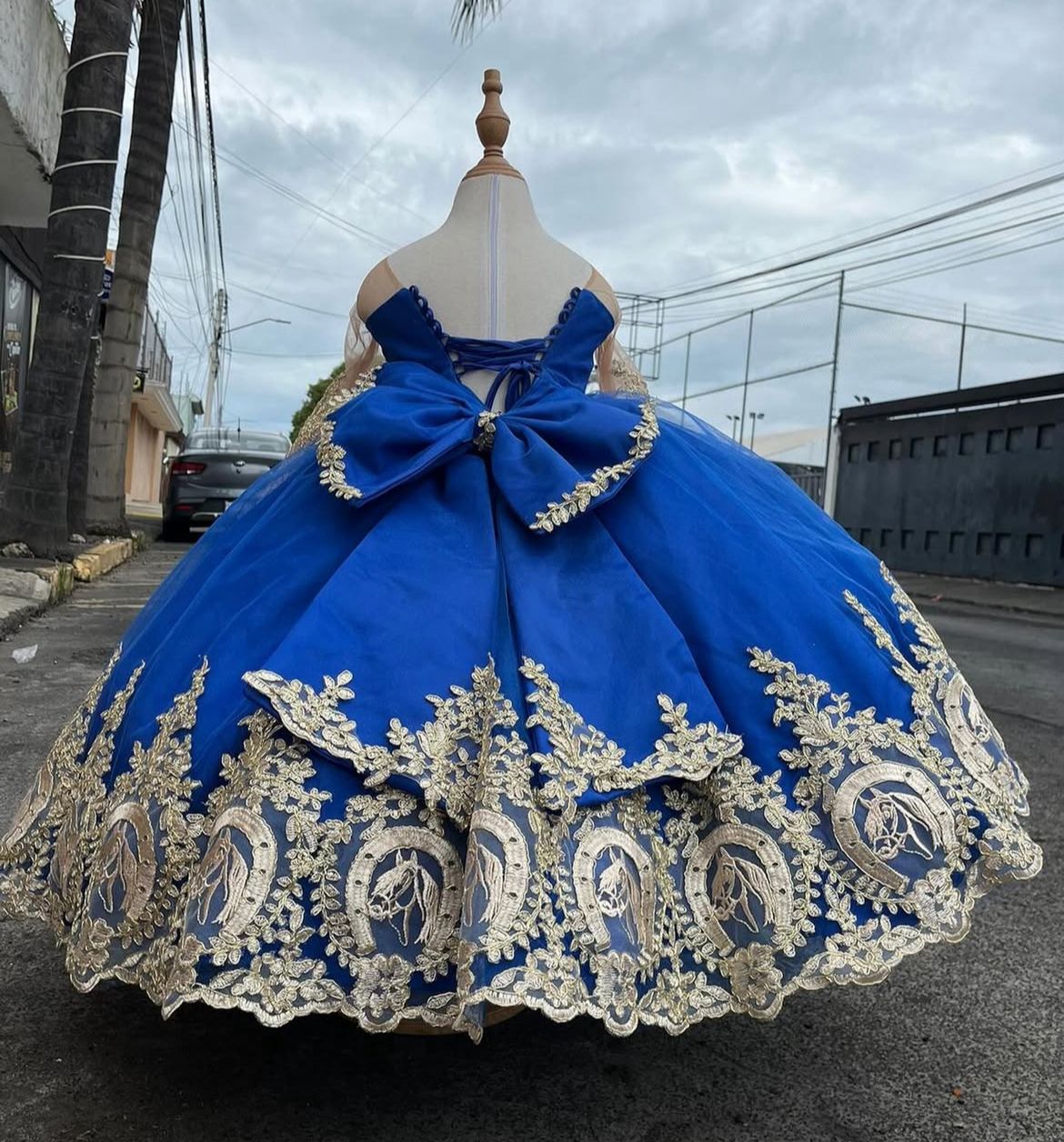 Este hermoso vestido charro con cauda es todo un homenaje a la tradición mexicana y perfecto para los amantes de la charrería. Detalle de transparencia y mangas 3/4 que aportan elegancia y comodidad. Además, cuenta con un bonito moño en la parte trasera que complementa su estilo tradicional y sofisticado. Sin duda, este vestido es la opción perfecta para quienes desean mostrar su gusto por la cultura mexicana.