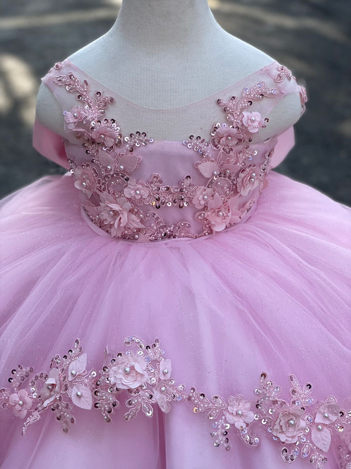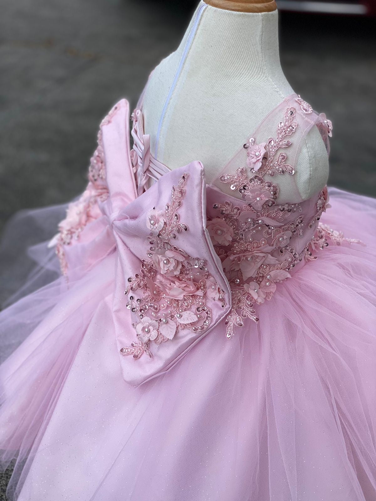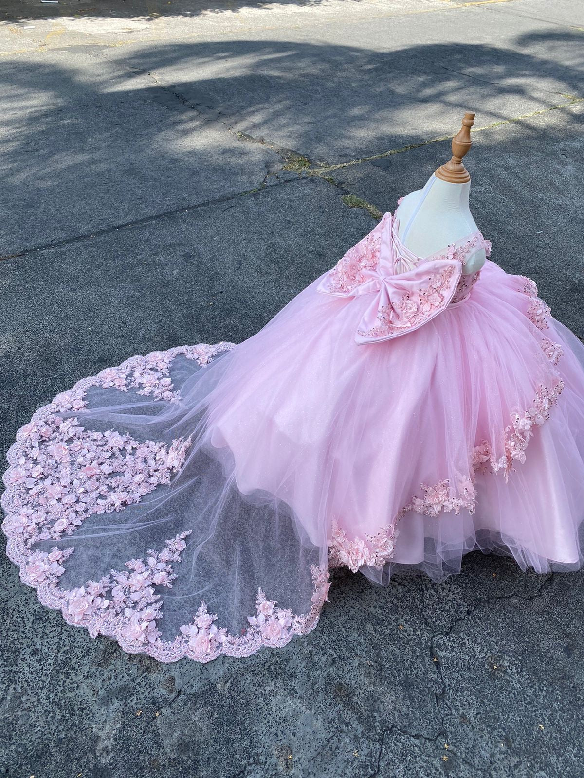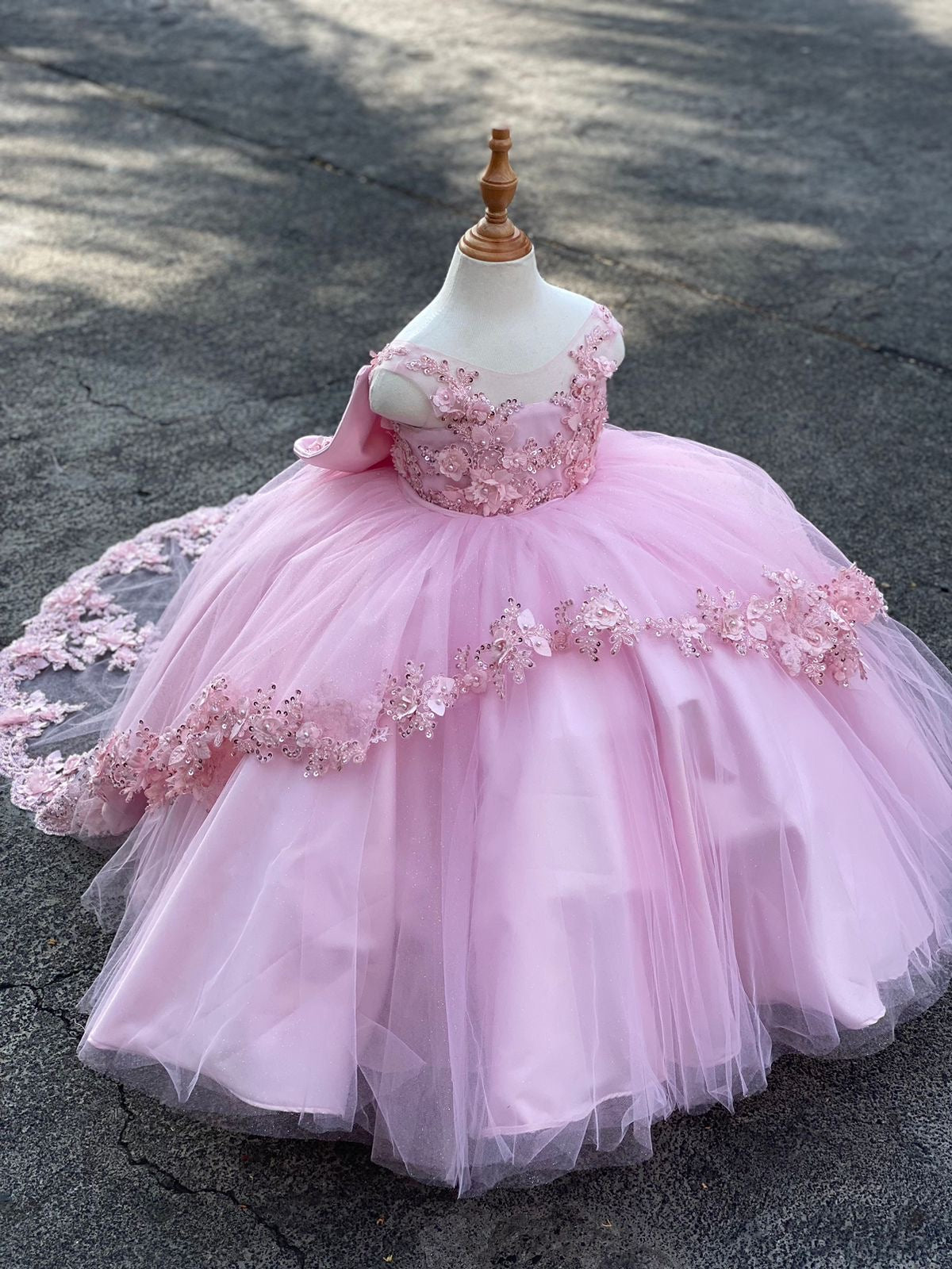 Este hermoso vestido para niñas parece salido de un cuento de hadas, diseñado para hacer que las pequeñas se sientan como princesas en sus momentos más especiales. Con un delicado encaje que aporta un toque de elegancia y sofisticación, su cola de arrastre añade un aire de glamour y distinción. Además, cuenta con una falda desmontable que permite transformar el look, haciéndolo aún más coqueto y versátil para cualquier evento.